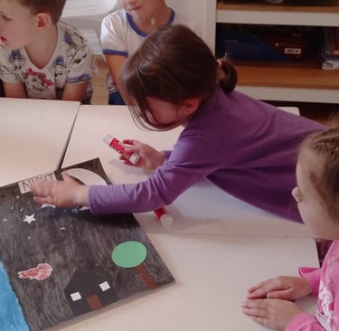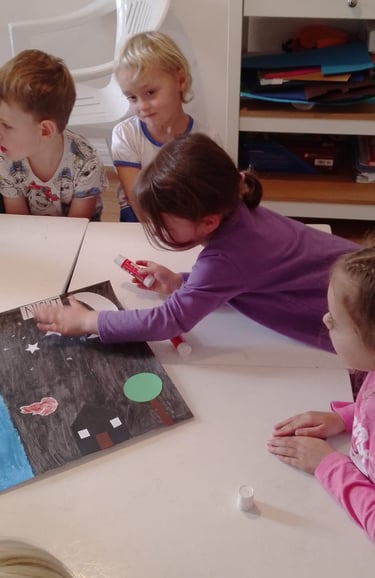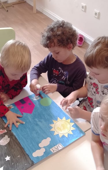 Our preschoolers explored the Day and Night theme this week..🌞🌜 Together they created a beautiful Day and Night collage featuring daytime and nighttime animals ⭐ 💛