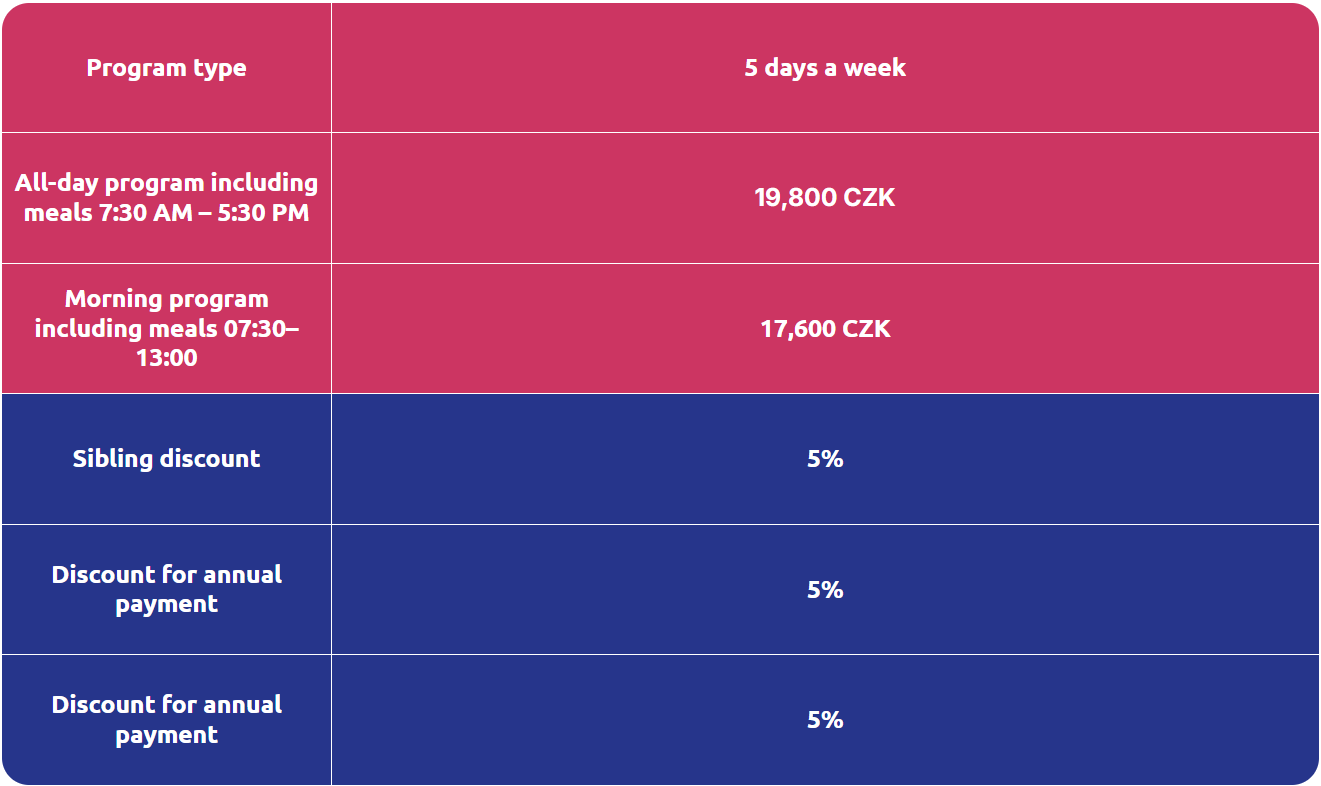 The first step on the path to bilingual education, the nursery program at Prague International Academy is designed for children aged 1.5 to 3 years as their first step in their educational journey, which naturally continues in kindergarten and subsequently in primary school. We offer a safe and stimulating environment where children acquire basic skills, explore the world around them, and are introduced to the English language for the first time.