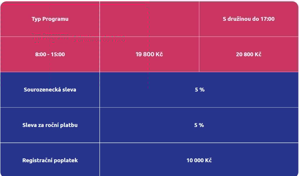 Naše škola klade důraz na individuální přístup, a proto jsme připraveni poskytnout vzdělávací plán přizpůsobený potřebám každého dítěte. Děti v rámci programu absolvují všechny důležité předměty, jako je matematika, angličtina, čeština, přírodní vědy a společenské vědy, přičemž výuka je obohacena o kreativní a pohybové aktivity.