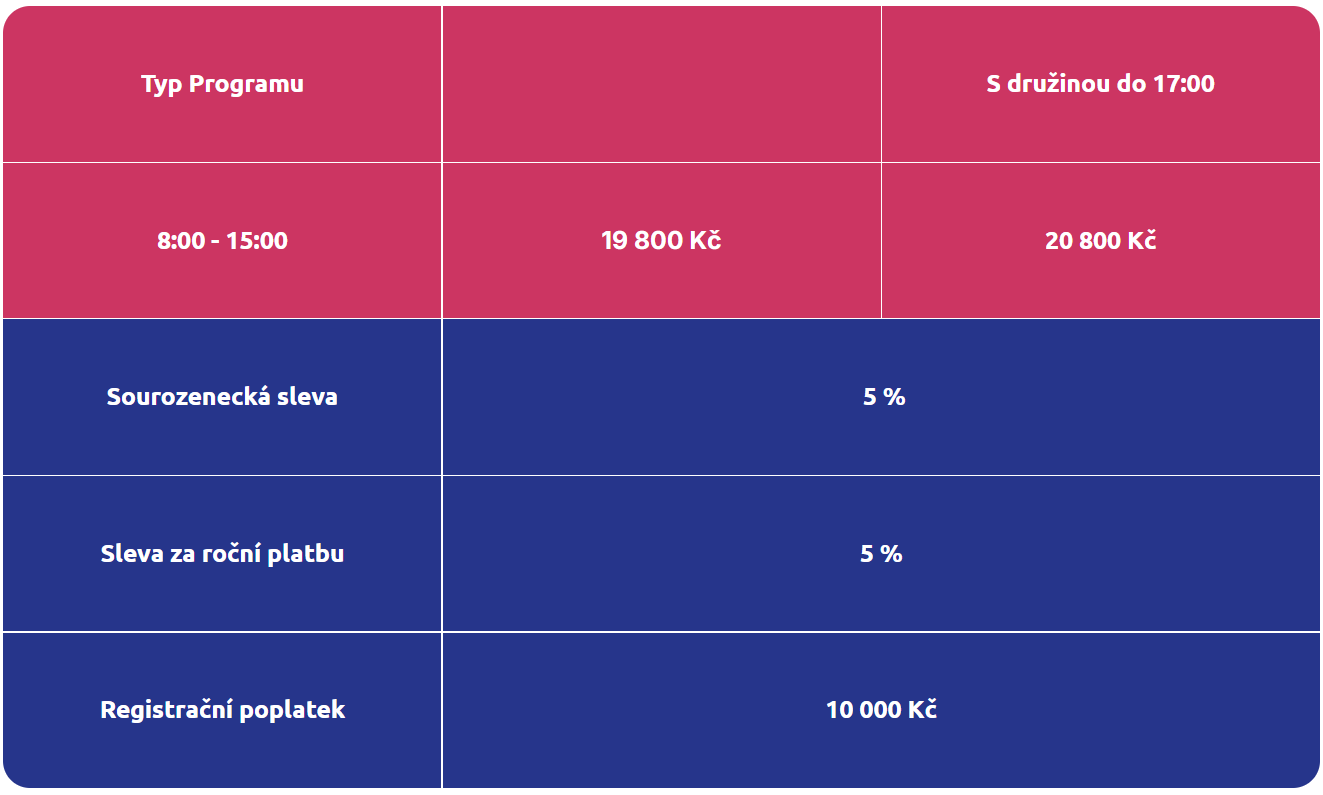 Naše škola klade důraz na individuální přístup, a proto jsme připraveni poskytnout vzdělávací plán přizpůsobený potřebám každého dítěte. Děti v rámci programu absolvují všechny důležité předměty, jako je matematika, angličtina, čeština, přírodní vědy a společenské vědy, přičemž výuka je obohacena o kreativní a pohybové aktivity.